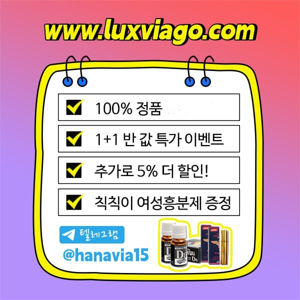 지금 바로 ❣️럭스비아❣️에 방문하셔서 정품시알리스구매 빠른배송 서비스와 1+1 반 값 특가 이벤트 혜택을 누려보세요. 당신의 삶이 더욱 짜릿하고 힘차게 변화할 것입니다. 문의사항은 언제든지 텔레그램(@hanavia15)으로 연락 주십시오.